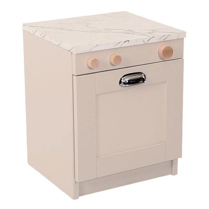 Beautifully designed play dishwasher, created to offer a realistic and stylish addition to any playroom, preschool, or Montessori learning environment. Crafted in a soft, grey tone, this miniature dishwasher features a modern, minimalist aesthetic that blends effortlessly with both contemporary and classic play kitchen sets. The top surface showcases a premium marble-style finish, giving the appliance a polished, high-end appearance that elevates imaginative