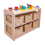 The 3 Shelf Open Store with Baskets provides toddlers a functional storage solution with a dual purpose design allowing it to serve as a room divider.