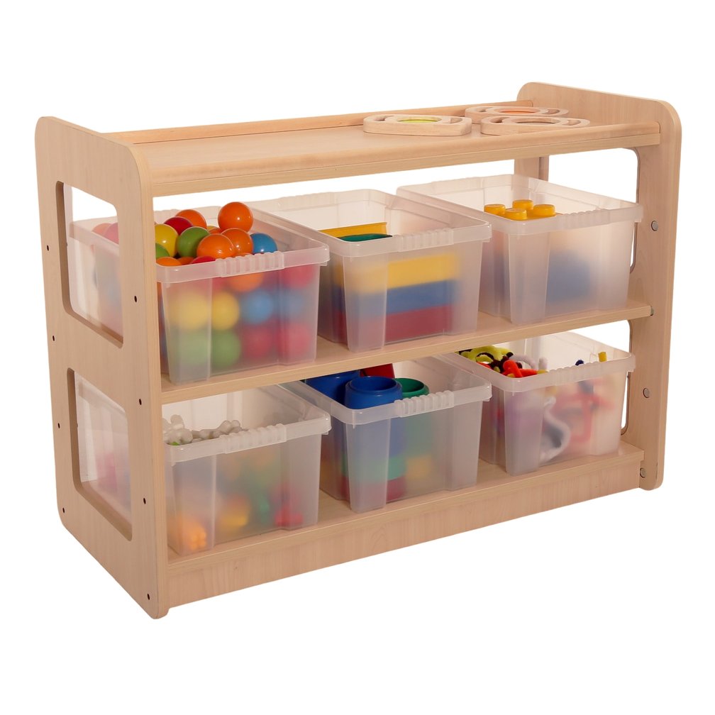 The 3 Shelf Open Store with Trays provides toddlers a functional storage solution with a dual purpose design allowing it to serve as a room divider.