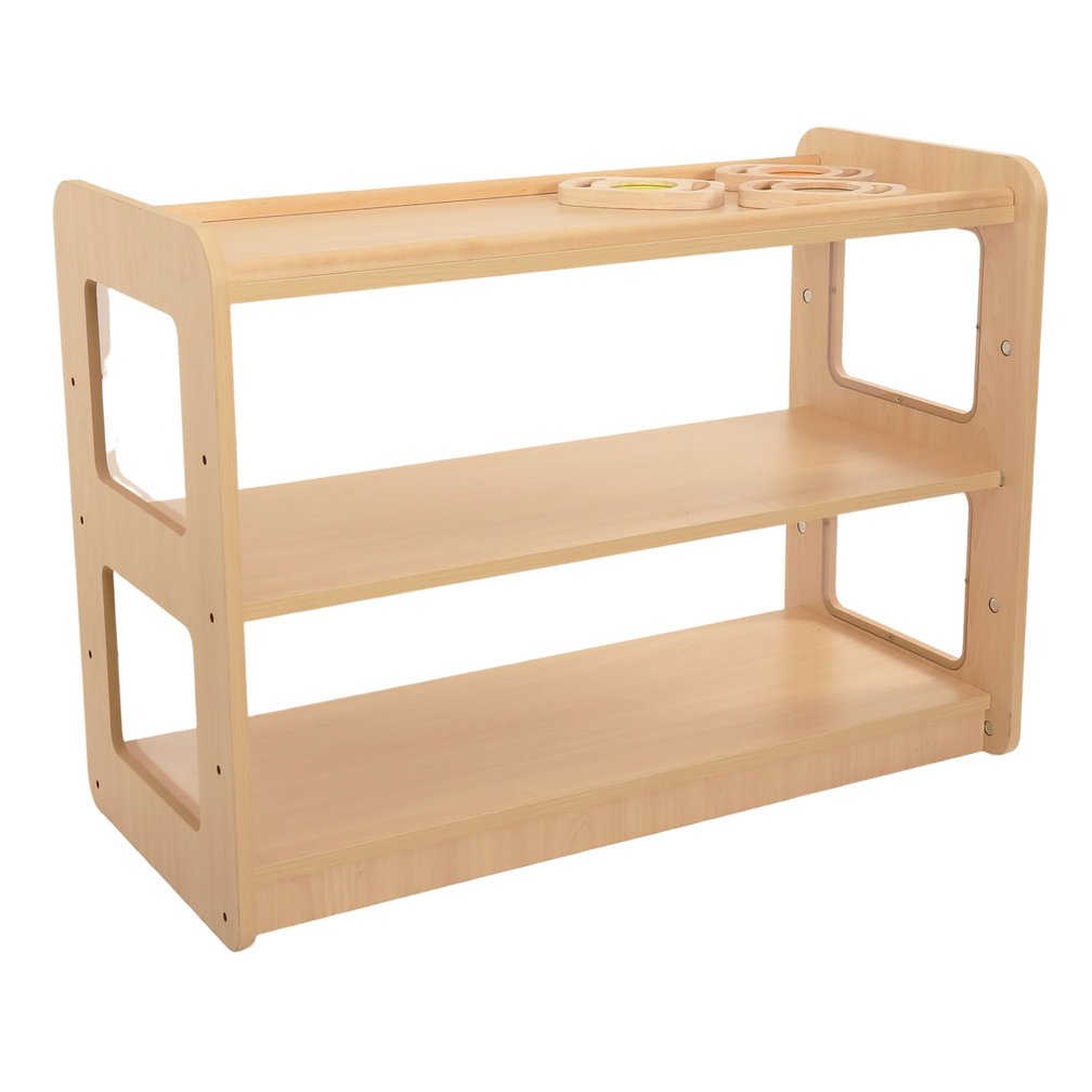 The 3 Shelf Open Store provides toddlers a functional storage solution with a dual purpose design allowing it to serve as a room divider.