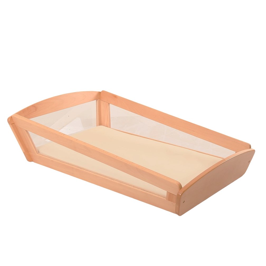 A stylish bed for when its nap time supplied with mattress. Crafted with solid beech and perspex panels for easy veiwing.