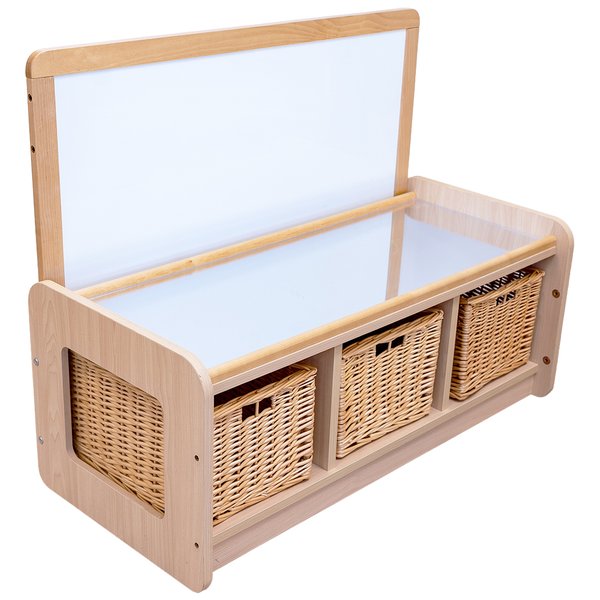 Perfect for storing phonics resources, maths equipment and more. Plastic trays allow for easy clean and are available in clear or coloured varieties. Wicker storage baskets create a natural feel and complement the beech units.